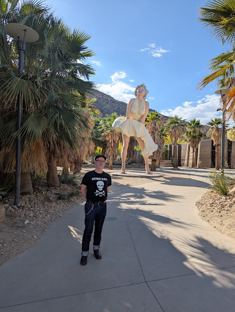 We explored downtown Palm Springs. Stopped for the inevitable selfie with the controversial Marilyn Monroe statue. (Looking at this shot, I can tell by my t-shirt this is from the day before. Look, my brain is scrambled! I've lost track of time!). We stopped by the Tonga Hut (yet another great Tiki bar!) for their special offer of a Mai Tai and three seafood tacos (insanely good; the tacos came with fresh pineapple chunks).